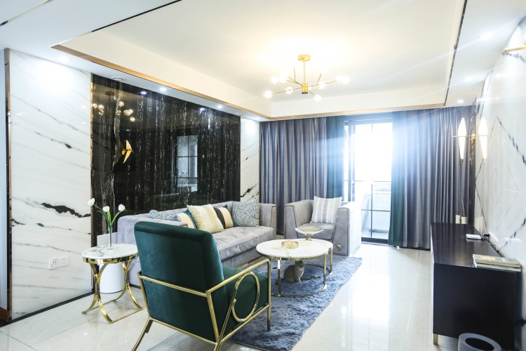感謝這次裝修的效果非常棒,我非常滿意。其中,比較亮眼的地方就有開放式廚房的設(shè) 計(jì)以及整個(gè)餐邊柜的打造,整體看起來(lái)很開闊也很實(shí)用。還有這個(gè)輕奢金邊線條的運(yùn)用 ,配上大理石的元素,構(gòu)成一個(gè)高級(jí)黑白灰系列,我非常滿意。
