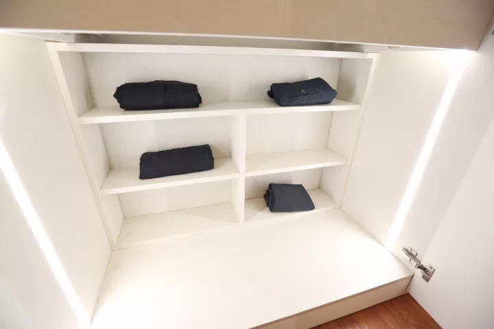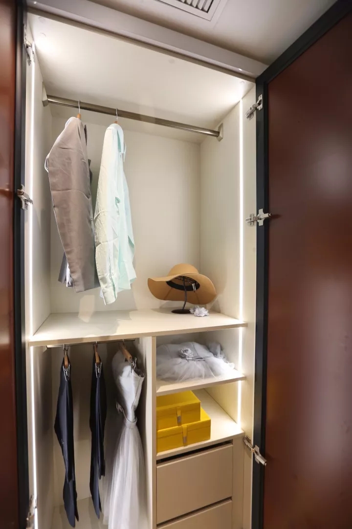 ▲ 柜內(nèi)感應(yīng)LED燈,打開柜門,每一件衣服都在發(fā)光