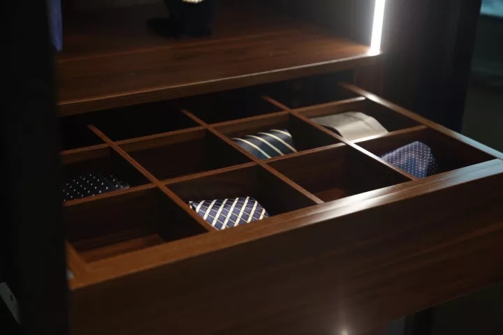 ▲ 衣柜多寶格,格子抽,領(lǐng)帶、絲巾等小物件的好歸宿
