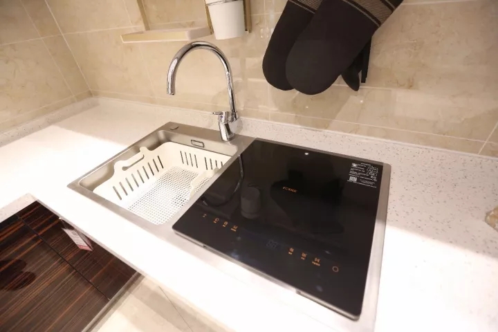水槽一體化洗碗機(jī),一側(cè)清洗果蔬,一側(cè)清洗碗筷,十分方便。