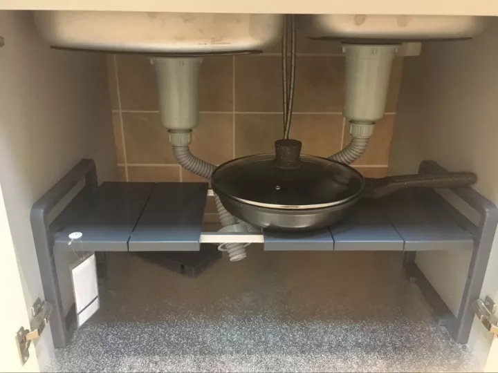 可直接沖洗的水槽鍋架,可移動面板更方便。