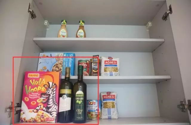 但是這不是普通的活動層板,下面這個活動層板的深度比柜體淺一些,為了方便收納,較高的瓶裝調(diào)料可以放在第一層,在增加吊柜收納層次感的同時,也免去了彎腰拿瓶瓶罐罐的吃力感。