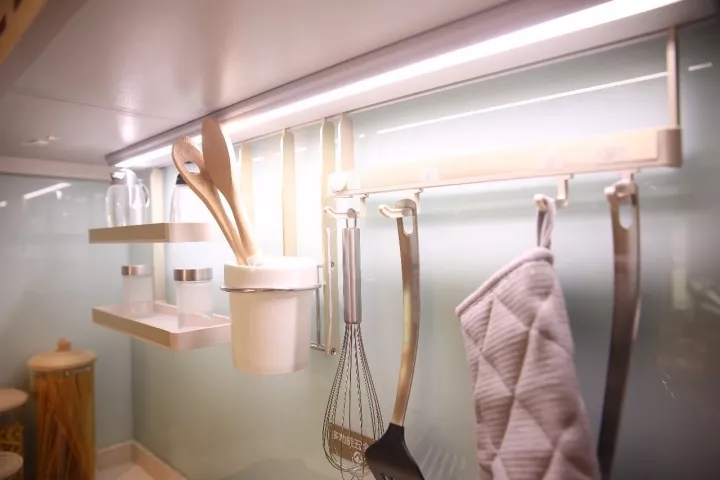 柜底燈,不管切菜還是炒菜,全部都在燈光下完成,暖暖的燈光下,這就是你一個人的主場!