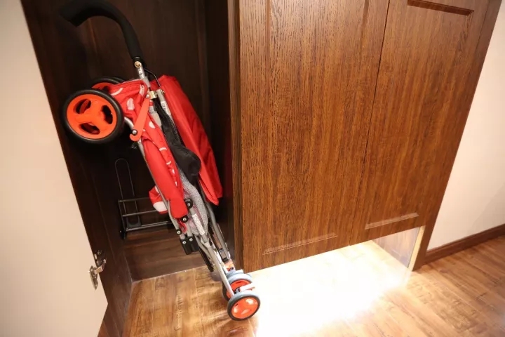 放下來(lái)可以放置雨靴/長(zhǎng)靴,拉上去可以放置嬰兒車。
