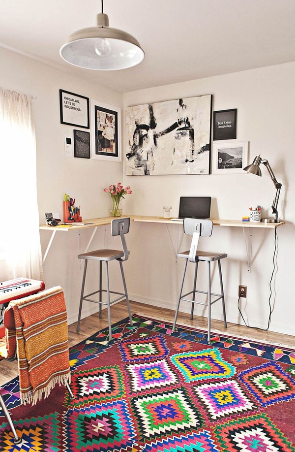如果家中不只一人需要使用書(shū)桌,遵循同樣的思路,一人一面桌子,互不打擾,還能陪伴彼此,增進(jìn)感情。