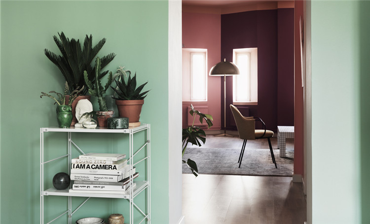 如何大面積地應(yīng)用顏色而不顯突兀?清新的薄荷綠與莊重的磚紅色,看起來絕對是毫不搭邊的兩種色彩,竟也能讓它們相處和諧,由此帶來多層次的豐富視覺享受。