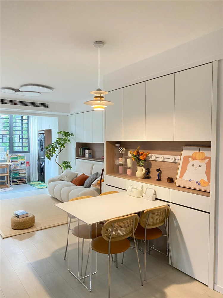對(duì)于空間不大的餐廚區(qū)域,常常會(huì)遇到收納空間不足的問題。而如果選擇做開放式廚餐廳,又難以避免油煙的侵?jǐn)_。