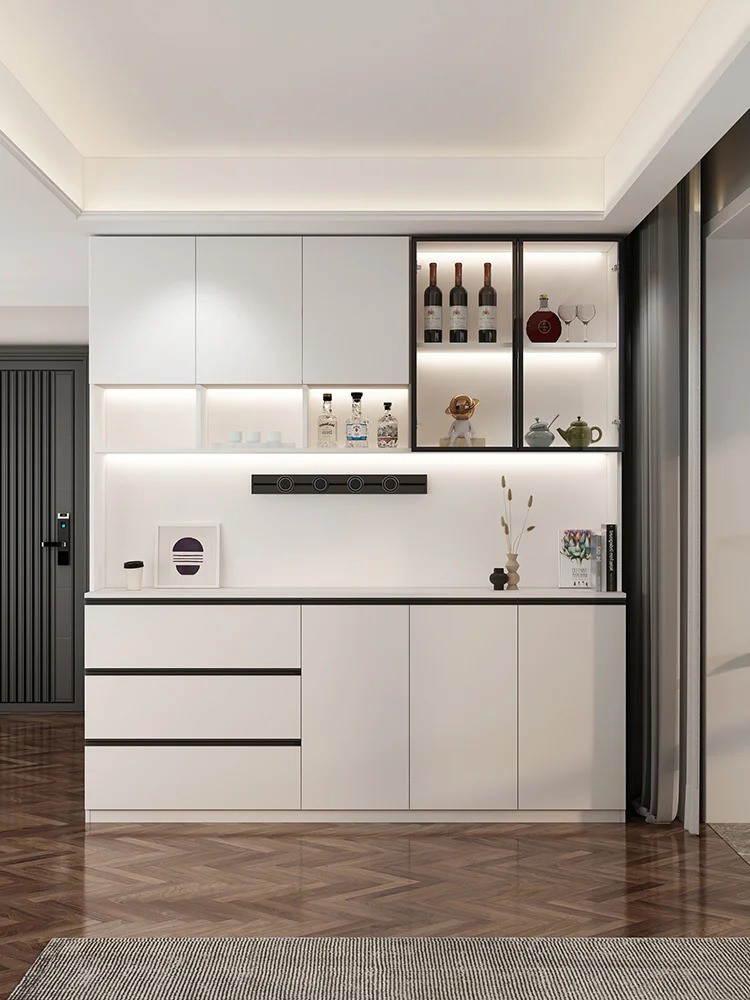 所以,柜下/柜內(nèi)燈的設(shè)計(jì)十分必要,除了方便居住者找東西,還能提升照明氛圍,增加空間的顏值。