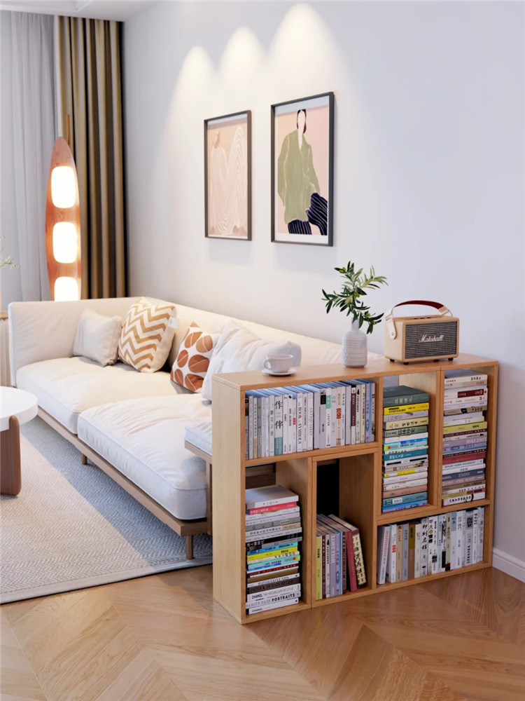 有一種做法就是定制一組開放式書架,將空間分割為兩個部分,這樣兩個區(qū)域都能以最近的距離到達書架。開放式書架,不會影響正常采光,還能在上面擺放一些裝飾品,提升空間的層次感。