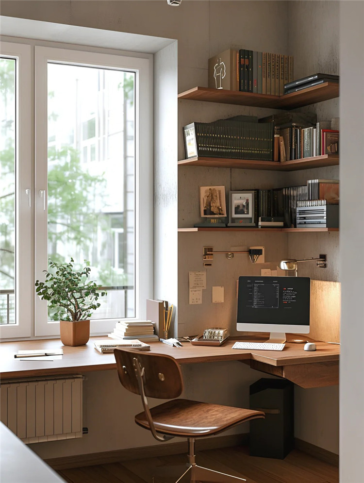 但很多時候由于空間的限制,我們沒法單獨將一間房改造為書房。其實,空間只要擠一擠,還是能擠出一個角落書房來的。我們一起來看看吧!