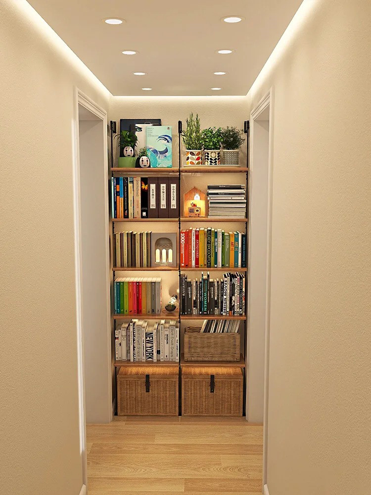 很多人認為,書房只能規(guī)劃在固定空間里,其實我們完全可以“見縫插針”,用大型書架來代替隔斷,不僅能輕松劃分出兩個獨立的區(qū)域,同時也能滿足書籍的收納要求。