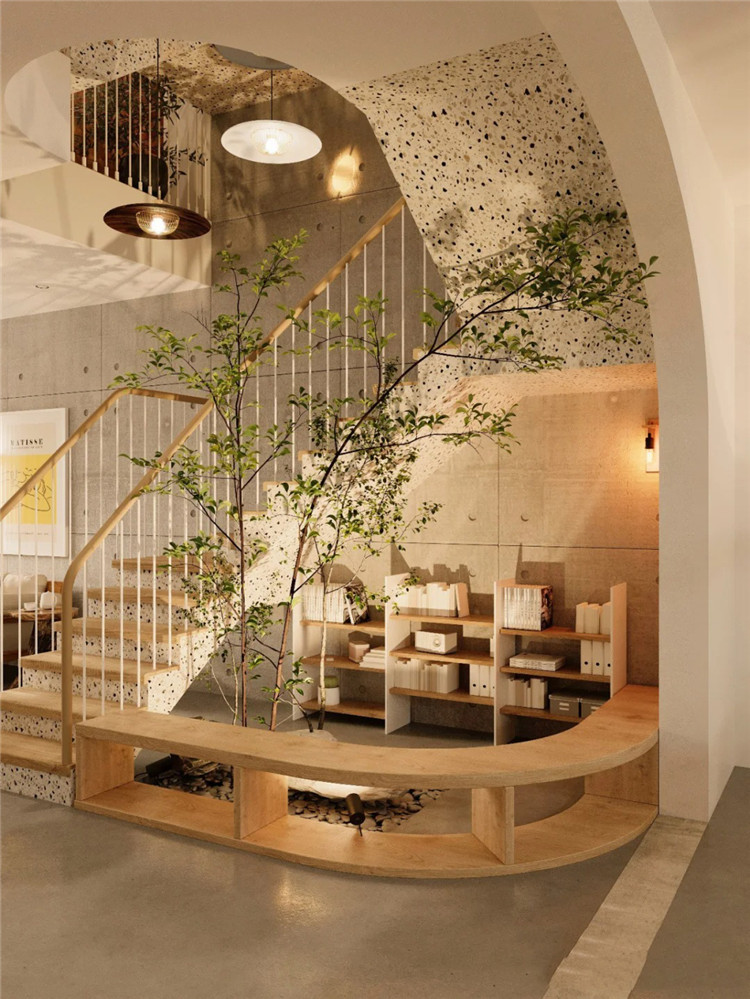 常見的遺忘角落有樓梯轉(zhuǎn)角、走廊、空間角落等,空間條件允許的情況下,可通過定制柜體、書桌、卡座等形式對其充分利用,進一步豐盈空間功能。