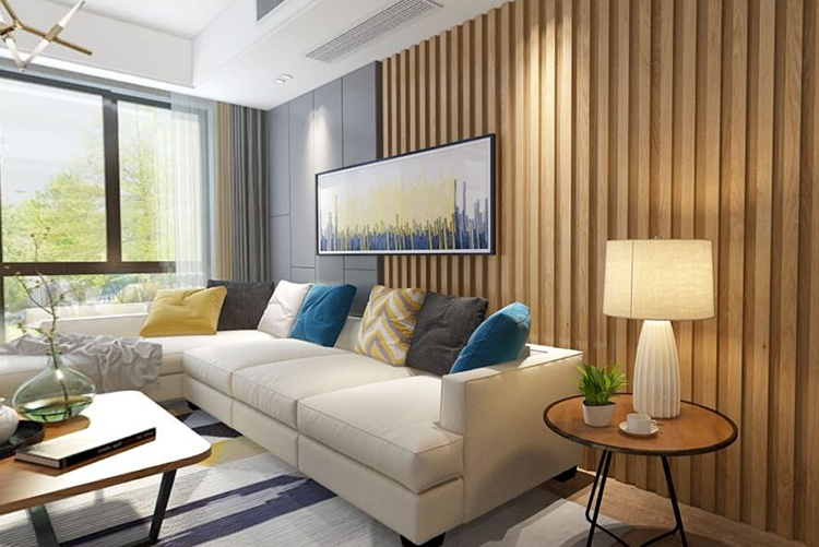 柵欄式的木質(zhì)背景墻搭配上水泥墻面,兩種自然感元素的碰撞讓家居空間更具設(shè)計美感。