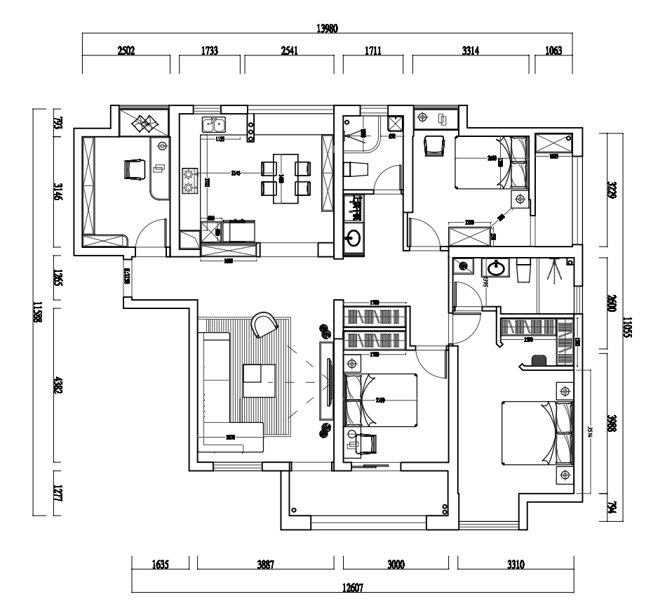 百瑞景160㎡四居室清新自然風(fēng)舒適家居戶型解析