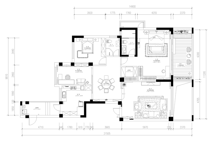 業(yè)主對家的定義:作為多子家庭,孩子的生活品質(zhì)是自己極為關(guān)注的部分,在風(fēng)格的選擇上,奢華而不奢靡的歐式風(fēng)格能為孩子帶來更多優(yōu)質(zhì)的視覺感受,而歐式家具的細(xì)膩質(zhì)感能帶來品質(zhì)的生活體驗,符合家庭對家的期待。業(yè)主希望孩子在空間中有用更多活動面積,精致布置之余不失童趣與溫馨感。