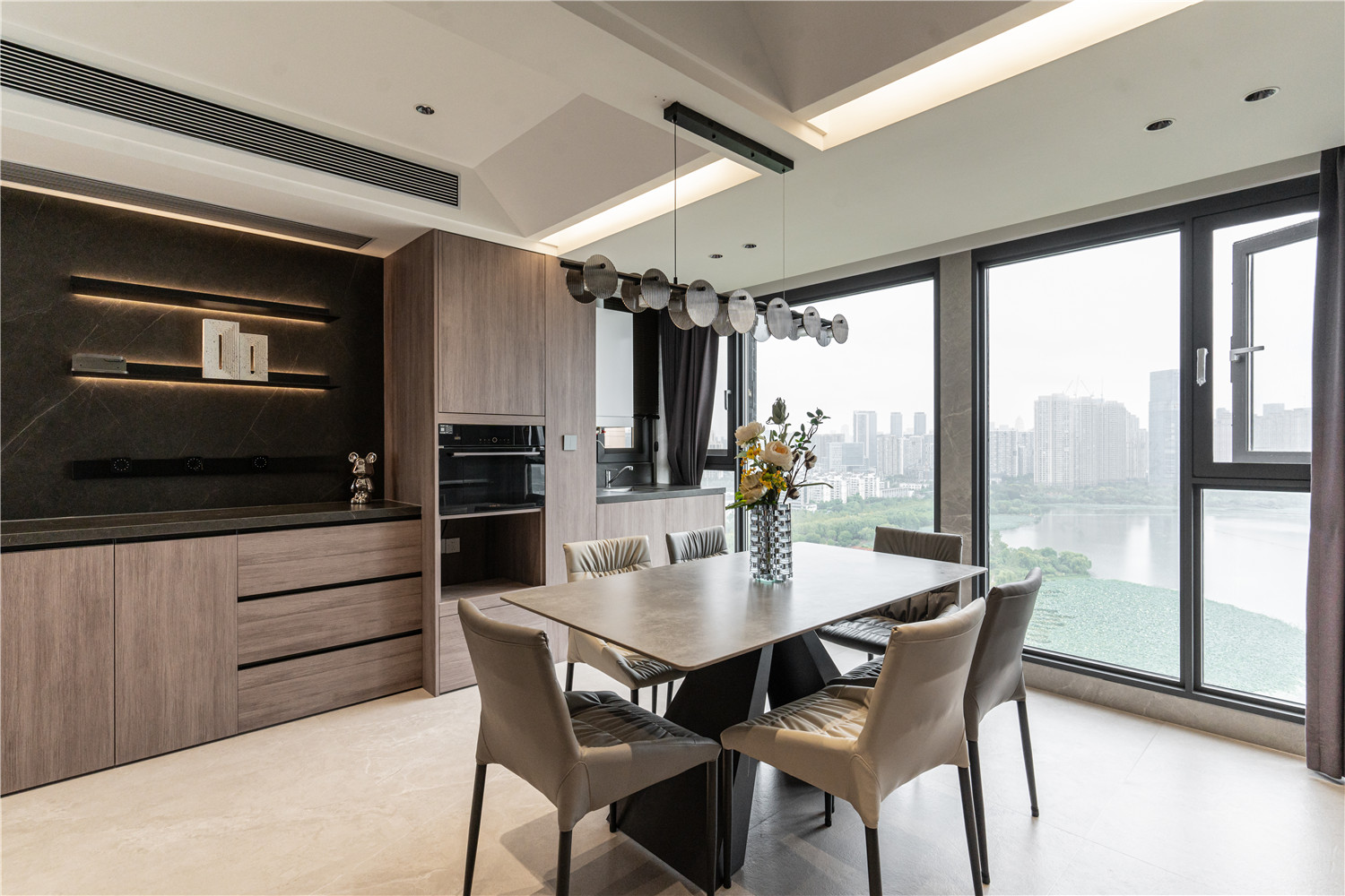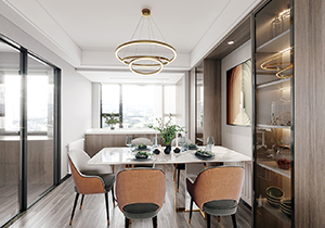 這是一套位于東湖天下的180㎡四居室房屋,空間面積做大且戶型結(jié)構(gòu)相對沒有太多瑕疵,因此在設(shè)計時無需在戶型空間的改造上做過多“糾纏”,以業(yè)主及其家人的使用需求為主即可。以不同材質(zhì)的地面材料為空間隔斷,能夠讓整個房屋更顯緊湊合理。為讓各個功能空間更具銜接感與一直性,不同的功能空間使用了相似的元素或者色彩進(jìn)行裝飾,以從視覺上保障整個房屋空間的和諧美。