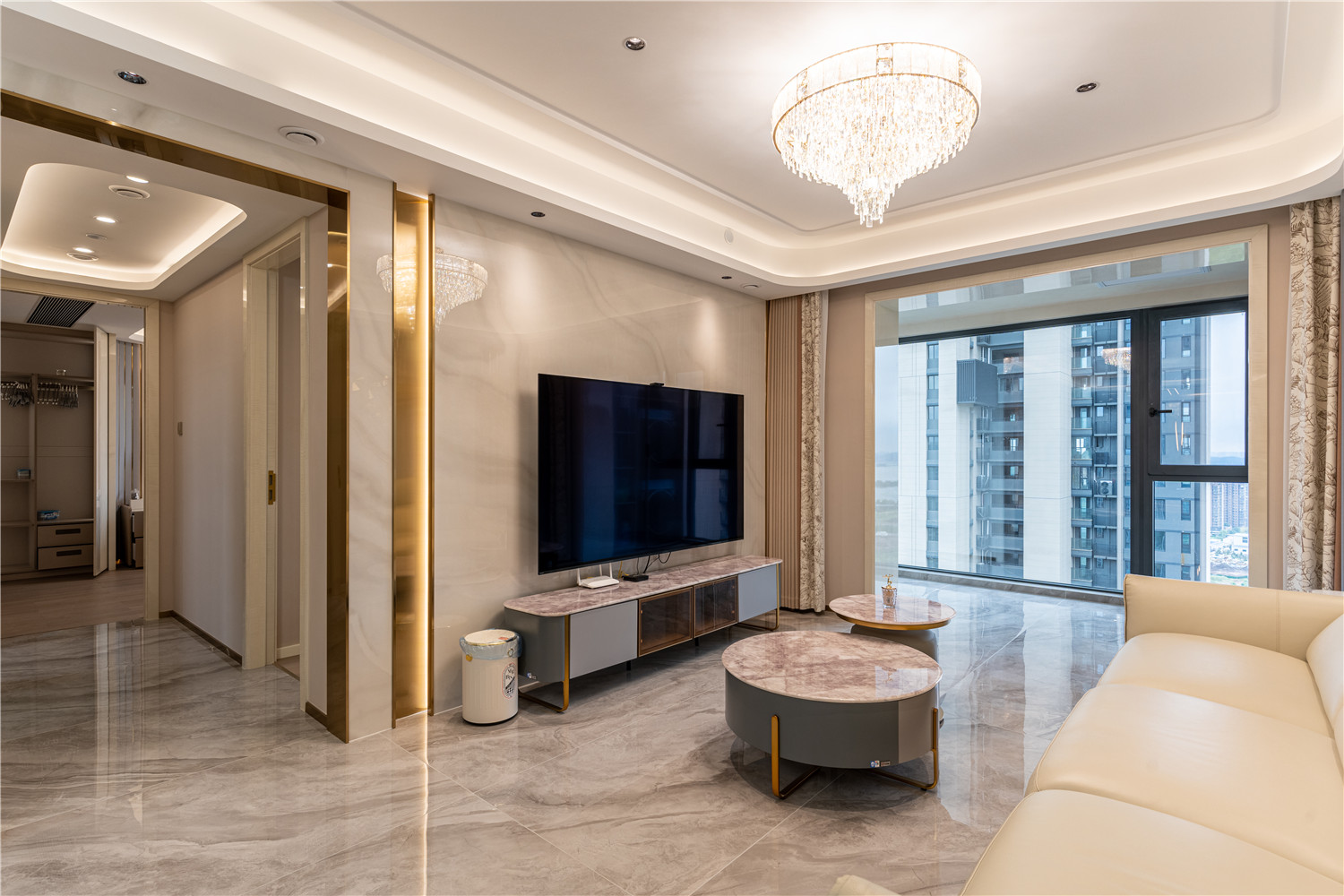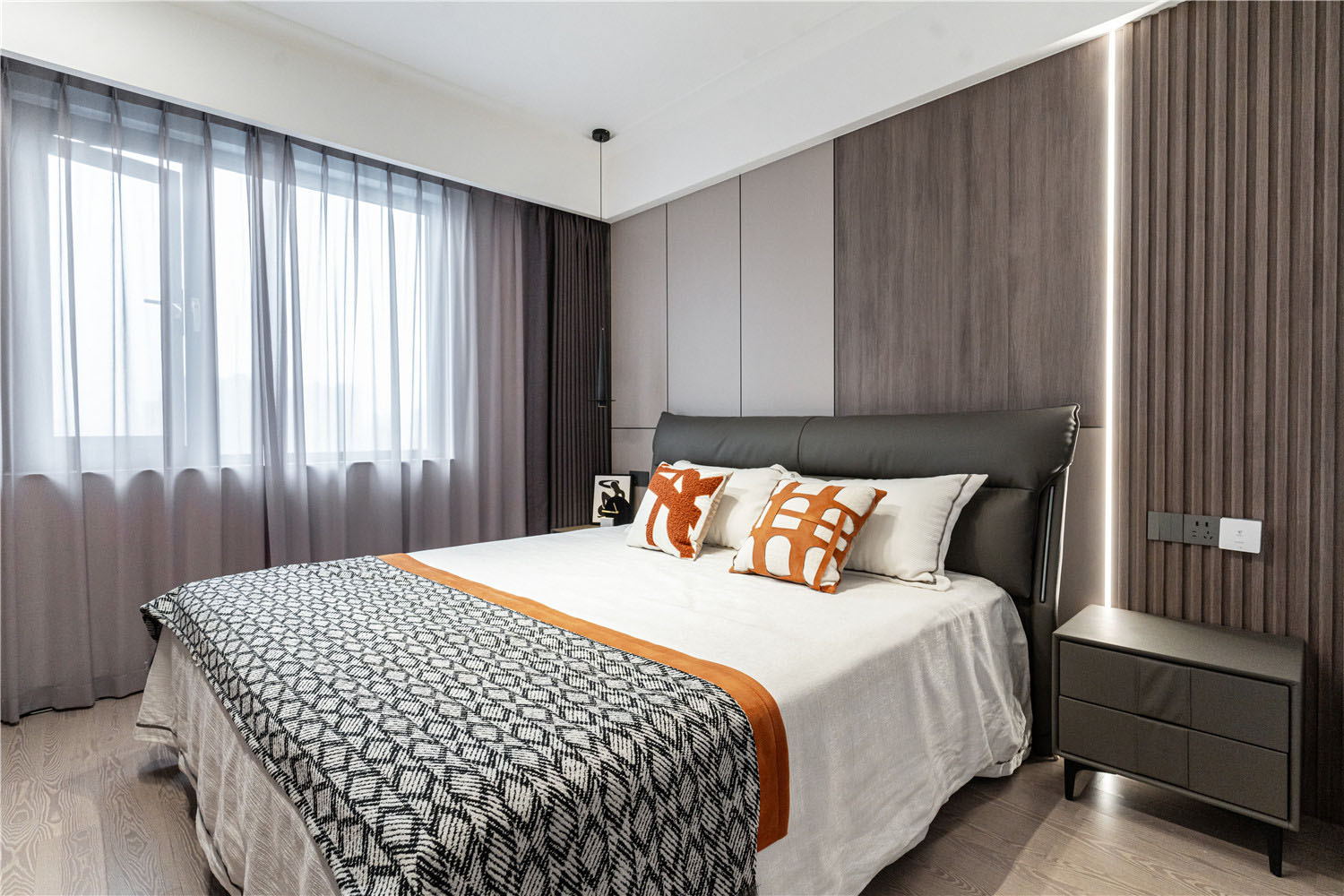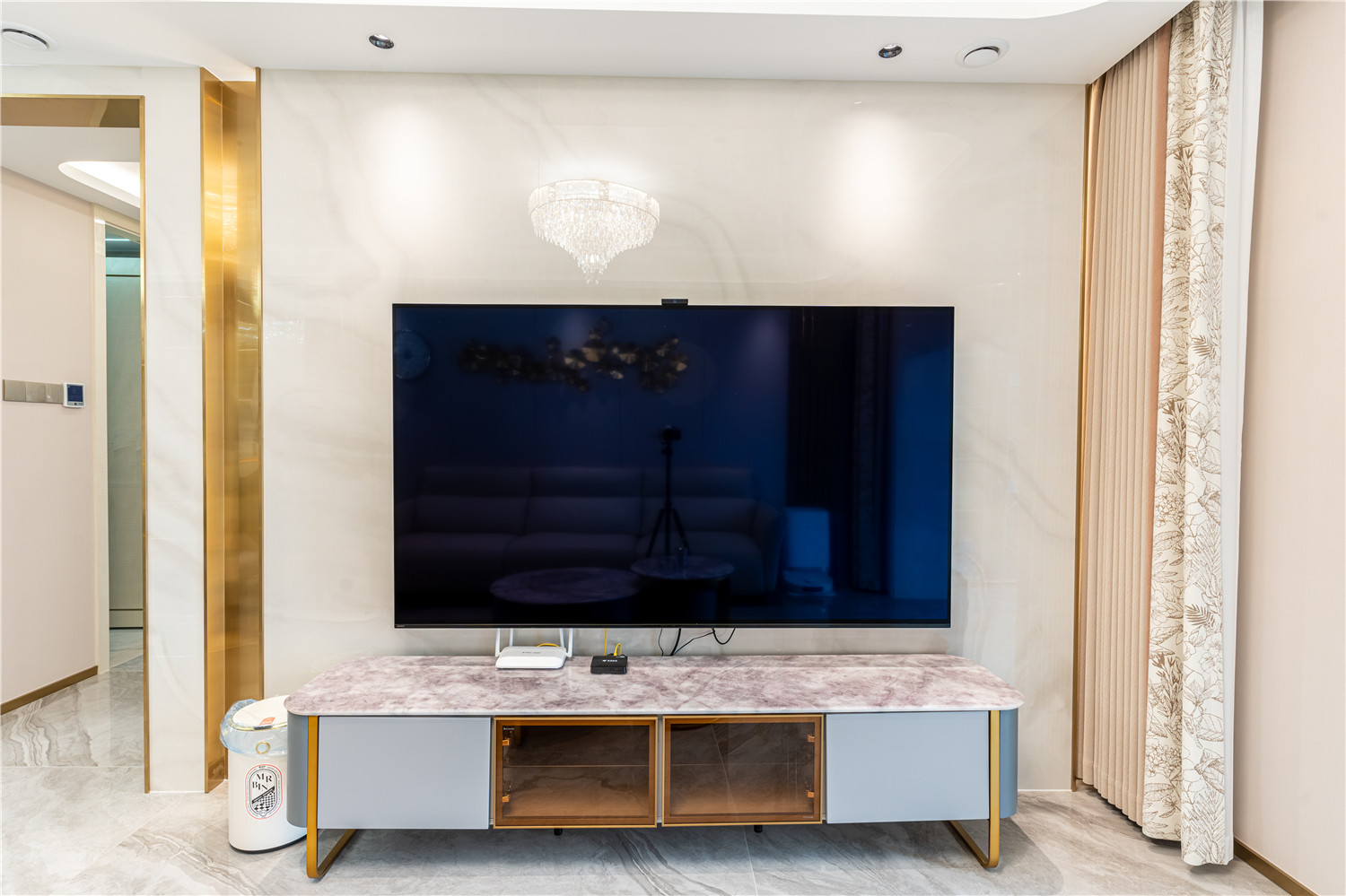 臥室空間邂逅浪漫紫色,時尚高雅的軟包設(shè)計不僅增添了隔音效果,也散發(fā)出優(yōu)雅古典的歐式氣息,電視機(jī)的融入凸顯出主人對高品質(zhì)生活的追求,傳遞出舒適智能的歐式生活品質(zhì)。