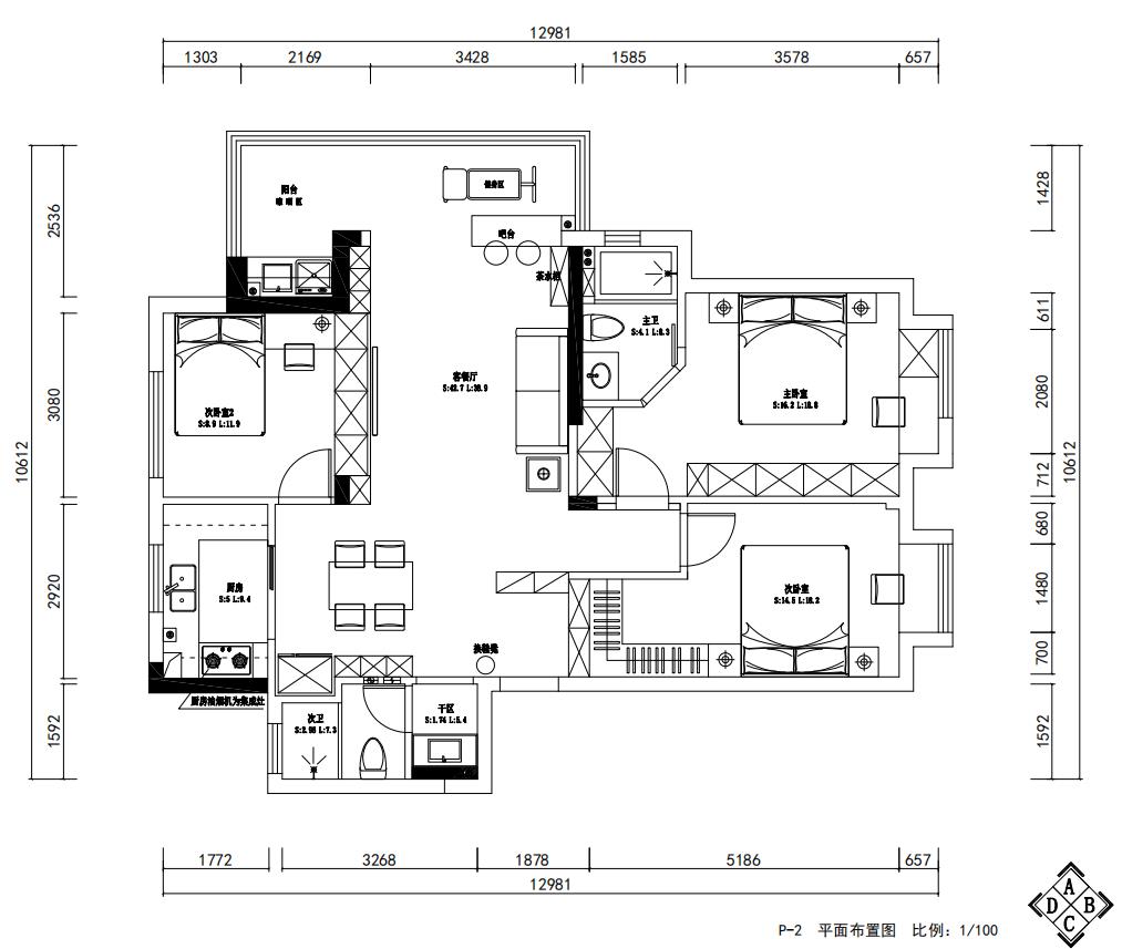 ①優(yōu)化次衛(wèi)布局,借用廚房空間嵌入洗漱區(qū),并調(diào)整門向,規(guī)避大門與次衛(wèi)門直對。