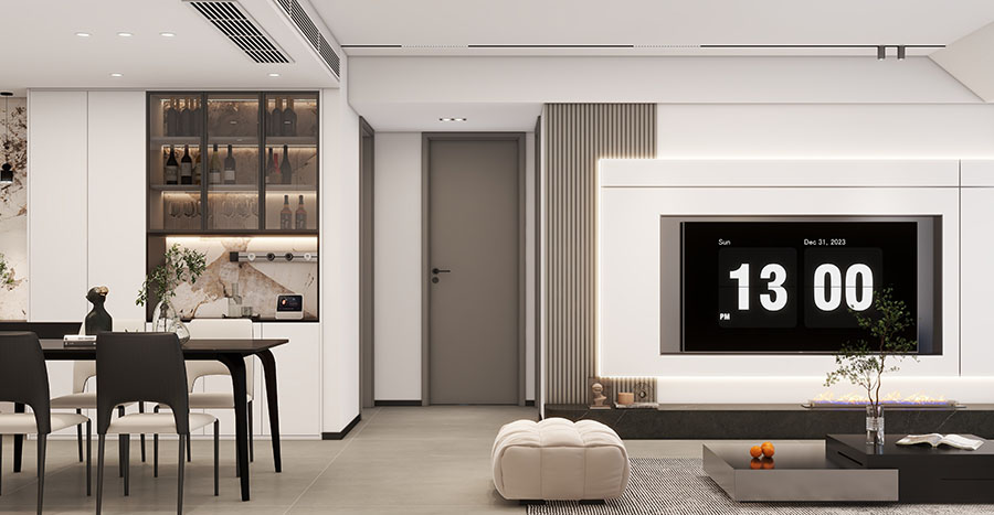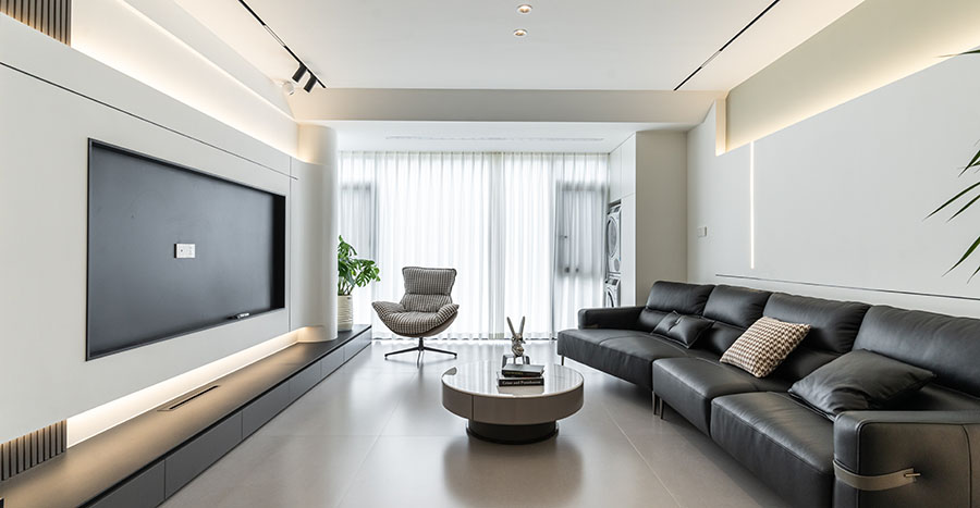 柔和的日光透過玻璃窗,輕撫寬敞的客廳,溫暖的光輝彌漫每一個角落,為居室披上寧靜溫暖的華裳。