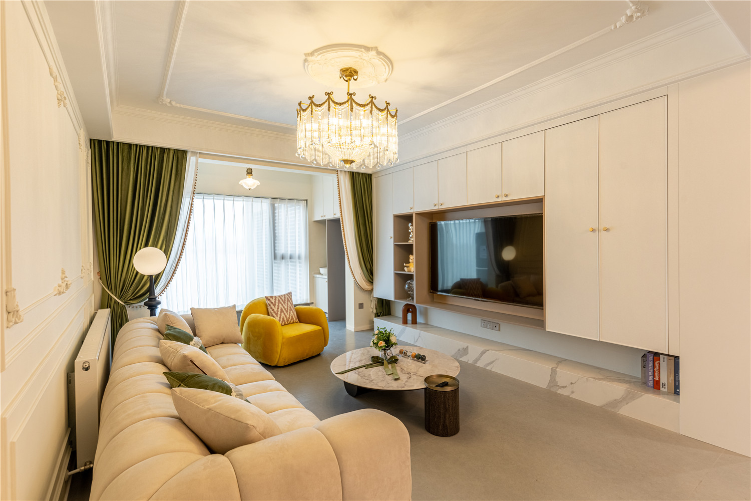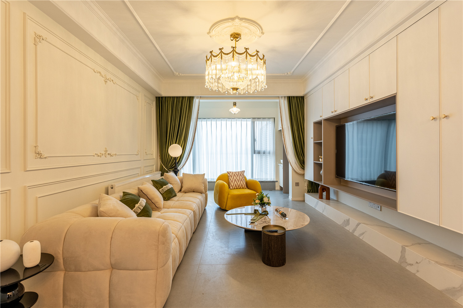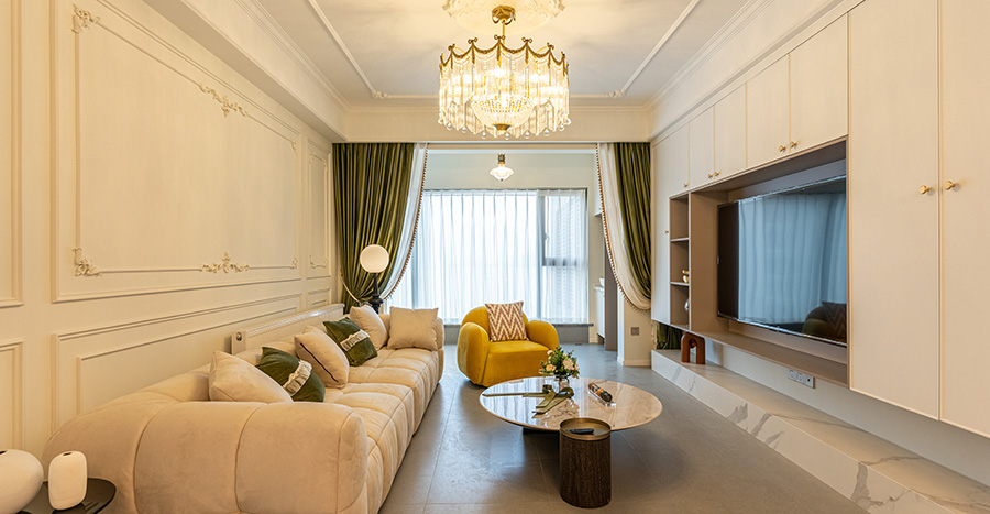世茂云錦這套三居室的住宅占地面積約為132㎡,整體的戶型結(jié)構(gòu)相對比較規(guī)整且南北通透,因此設(shè)計師在進行規(guī)劃設(shè)計時充分發(fā)揮了空間由于的結(jié)構(gòu)優(yōu)勢,將陽臺設(shè)計為大落地窗格局,將室外光線更好的引入會客區(qū)域,以提升空間的自然感與品質(zhì)感。為了滿足業(yè)主私密性起居使用需求,設(shè)計師還在主臥空間中單獨隔離出一個衛(wèi)浴空間,便于提升主人的生活質(zhì)感。