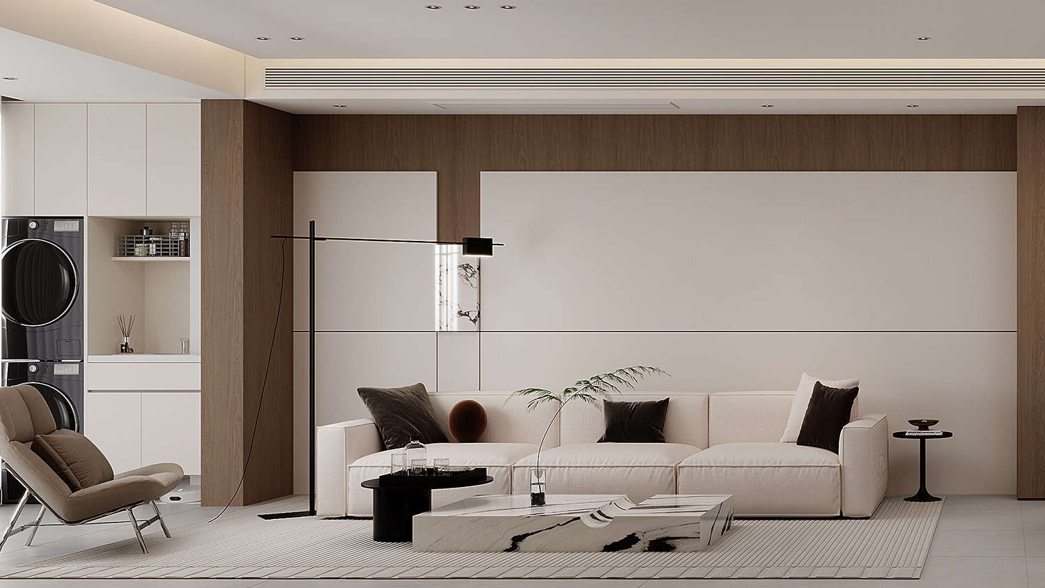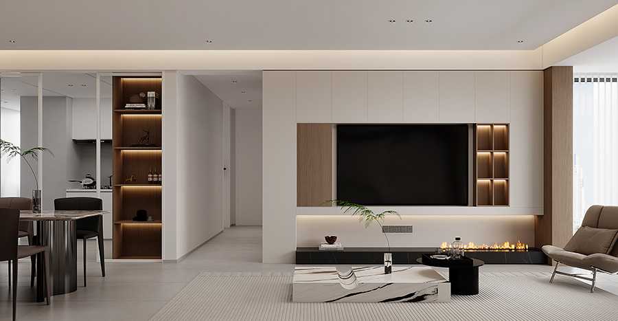 案例簡介:本案的男主是上市企業(yè)精英,長期在異地工作多年,歸來后第一件著手做的事情就是裝飾房子,他期待新家能夠給自己及家人帶來寧靜、沉穩(wěn)的氣息,且更具歸屬感。設(shè)計師根據(jù)業(yè)主的個人品味、工作以及生活習(xí)慣選擇使用現(xiàn)代簡約風(fēng)進行空間裝飾,而設(shè)計師在進行設(shè)計除了滿足居住者需求,更希望透過設(shè)計來鼓勵居住者參與空間,且成為被使用者珍視善待的空間,在日積月累中展現(xiàn)有機性,育成自身的生命力,才會讓家更具歸屬感。