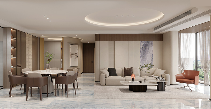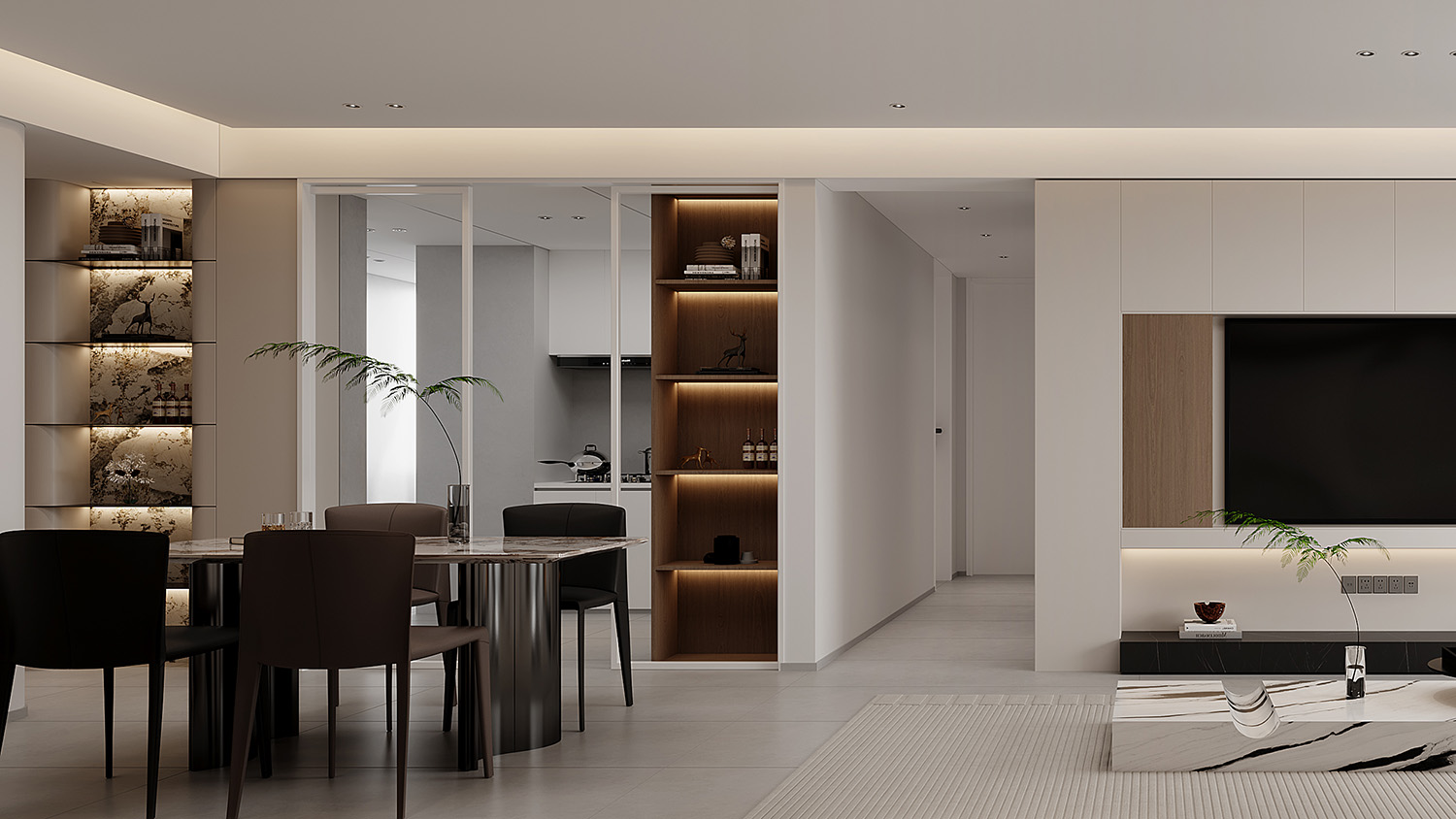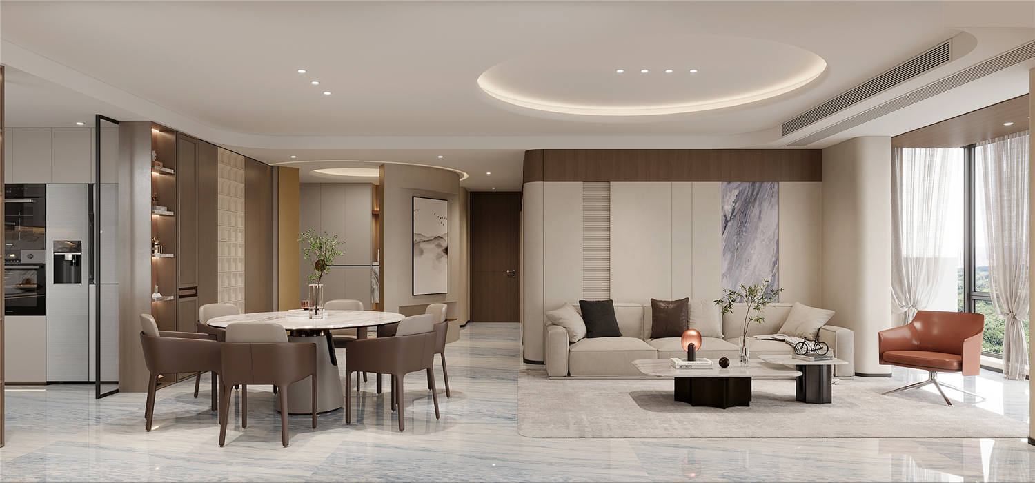 案例簡介:本案從空間布局、線條的統(tǒng)一、塊面的組合、材質(zhì)的運用、家具比例間的明確合理化與空間美學(xué)因素的考量等,讓經(jīng)典的輕奢與現(xiàn)代的元素完美的結(jié)合,全方位呈現(xiàn)空間的品質(zhì)。經(jīng)過簡化的輕奢風(fēng)格,以還原現(xiàn)代生活空間為出發(fā)點,每個功能區(qū)都自然地散發(fā)著一種尊貴而又和諧的氣質(zhì),精致完善的細節(jié)全部隱匿于空間之中。當(dāng)生活的品味不再是表面的包裝,內(nèi)斂婉約的奢華更讓人玩味無盡!