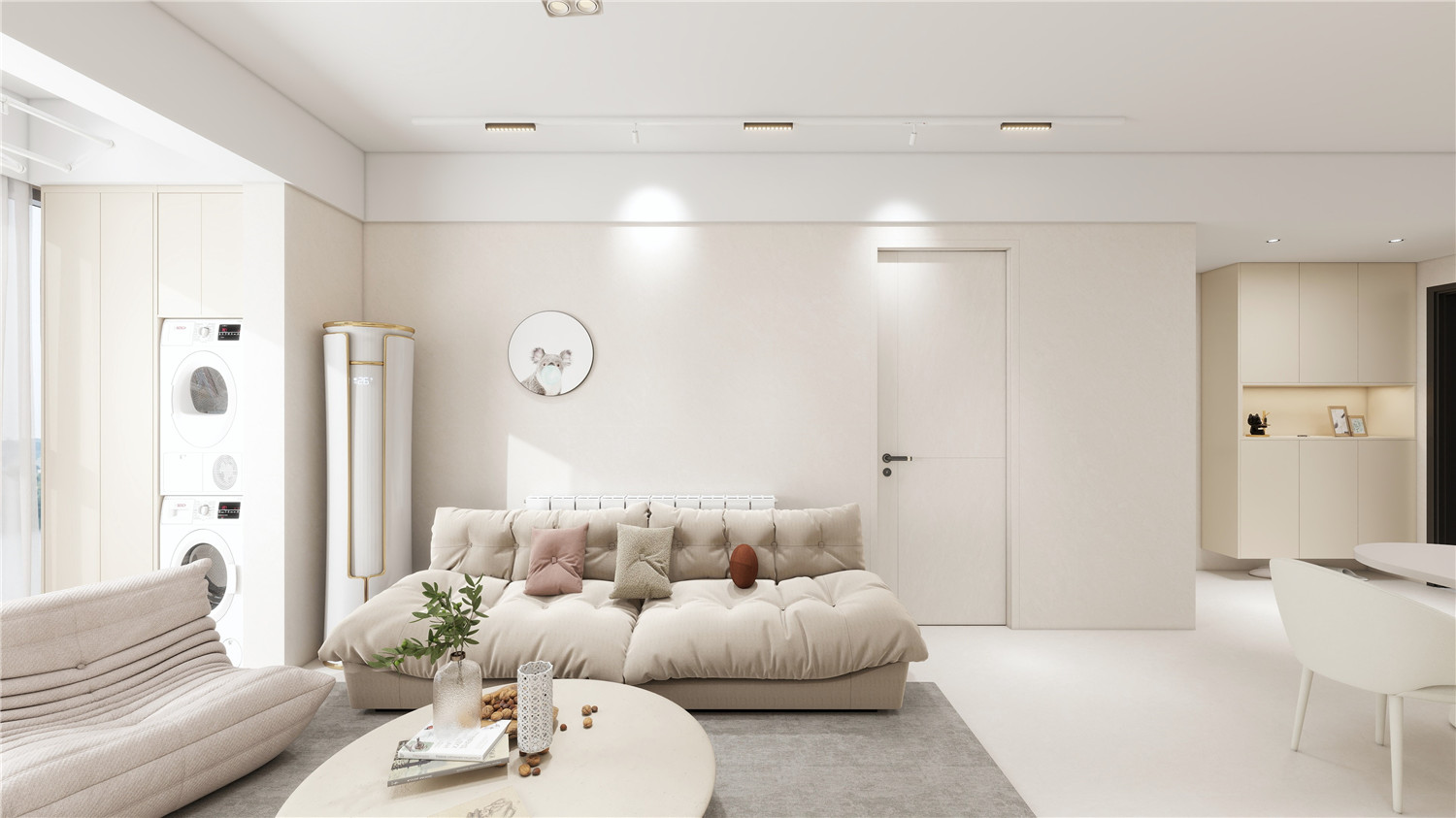 為了讓不大的玄關(guān)看起來更加的精致,設計師借助一面藝術(shù)半隔斷墻進行裝飾,避免室內(nèi)景象直接映入來者眼中,有效提升了空間的私密感與韻味感。而玄關(guān)側(cè)面出的收納柜設計,則有效提升了空間利用率。