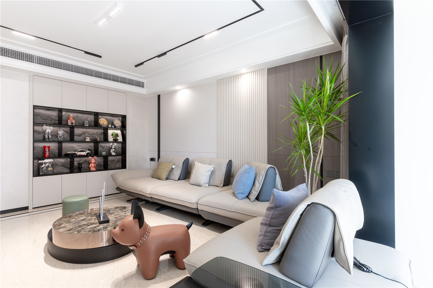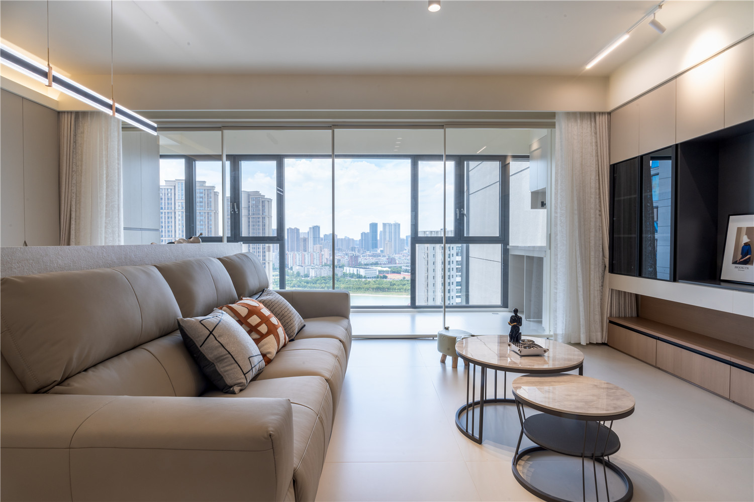 這棟位于瀾橋公館A棟的137㎡四居室住宅戶型南北通透、采光較好,且位于高層,因此設計師在進行規(guī)劃設計的時候充分利用了房屋的戶型結(jié)構(gòu)優(yōu)勢,同時根據(jù)業(yè)主的需求進行空間的規(guī)劃整合,以將房屋呈現(xiàn)出舒適、個性的整體感觀。雖然房屋整體面積不小,但是由于業(yè)主家庭成員較多,所需劃分的休憩空間也比較多,因此設計時就需舍棄一些繁瑣的元素,以簡約大氣為主。