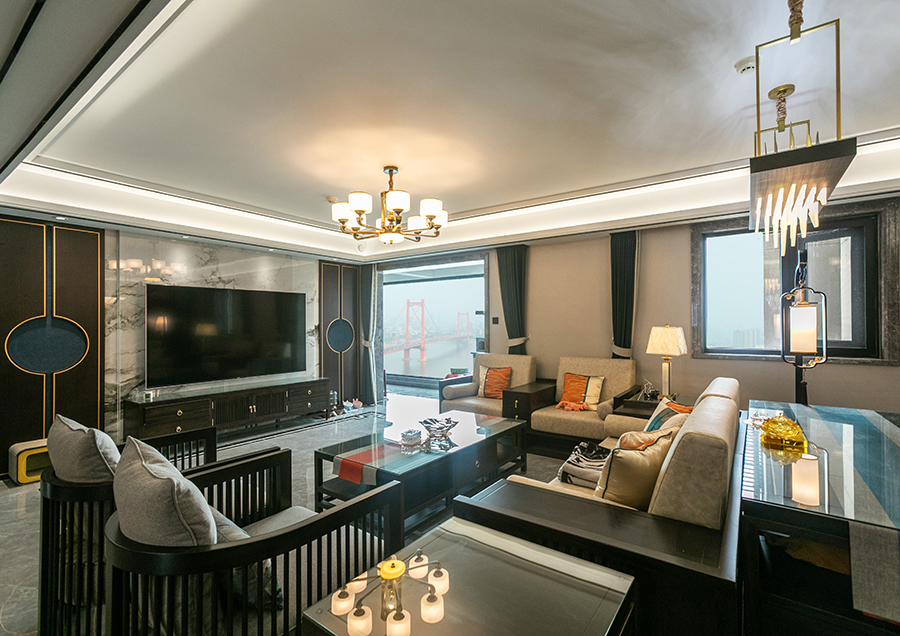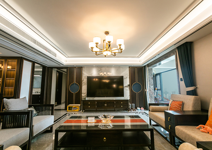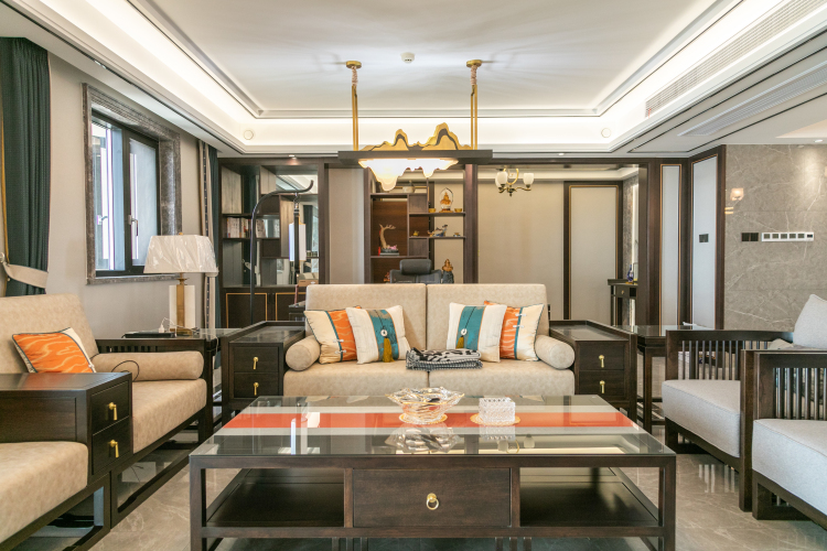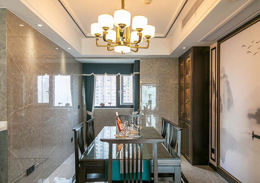案例簡介:本案例的業(yè)主作為一個教師,對于傳統(tǒng)的中國文化有著濃厚的興趣,因此在與設計師交流的時候強烈的表達了自己對中式元素的喜愛。因此在本案例設計過程中,設計師為業(yè)主選用了經(jīng)典的新中式風,同時借助各類質(zhì)感元素的雜糅使用,演繹了一個復古而又不失摩登時尚氛圍的輕奢雅苑。簡約的線條、傳統(tǒng)的中式復古元素,讓家居空間呈現(xiàn)出豐富的層次與藝術的格調(diào)。