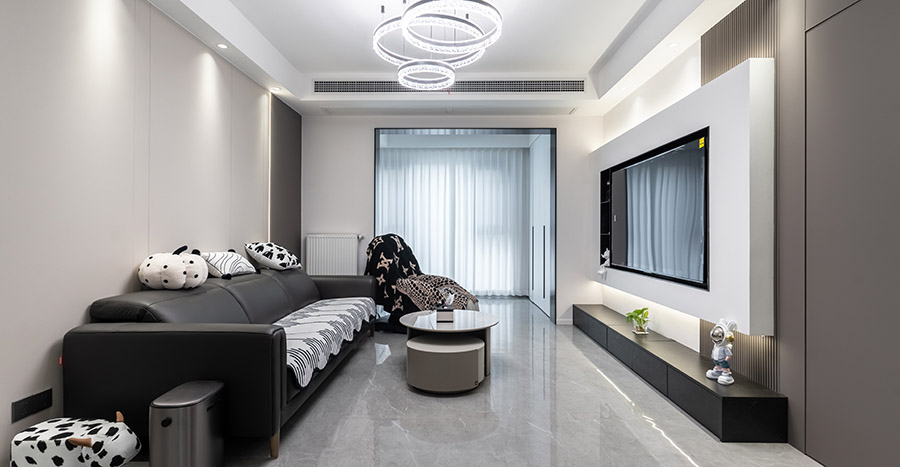案例簡介:對于空間氣質(zhì)的表達(dá)是一門藝術(shù),一個優(yōu)秀的設(shè)計師往往能夠借助簡單的色彩組合來營造不同的氛圍感,再借助一些合理的裝飾點綴,打造出一所帶有獨特氣息的家居空間。本案例的設(shè)計師借助簡約的灰白配色來營造空間的個性與氣質(zhì),同時借助不同材料的質(zhì)感裝飾空間,讓整個家居空間呈現(xiàn)簡約而又不簡單的視覺效果。