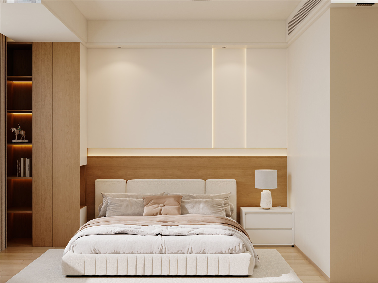 大面積的白色背景墻搭配上嵌入式的電視柜設(shè)計,整體給人簡約清新而又前衛(wèi)的獨特氣息。