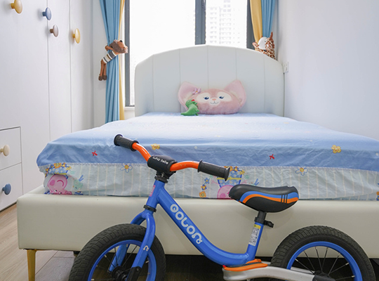 為了避免后續(xù)再進(jìn)行返工,設(shè)計(jì)師在進(jìn)行兒童房設(shè)計(jì)的時(shí)候沒有使用到較多童真感的元素,而是借助黑白灰的經(jīng)典配色強(qiáng)調(diào)空間耐看度與舒適度,以滿足長(zhǎng)期使用需求。