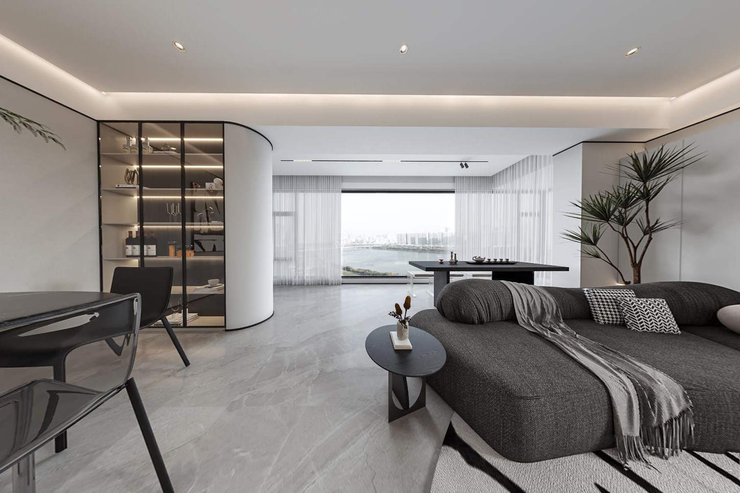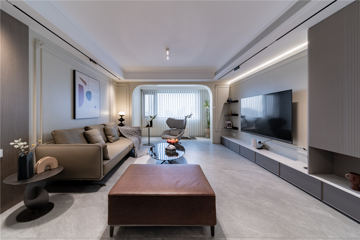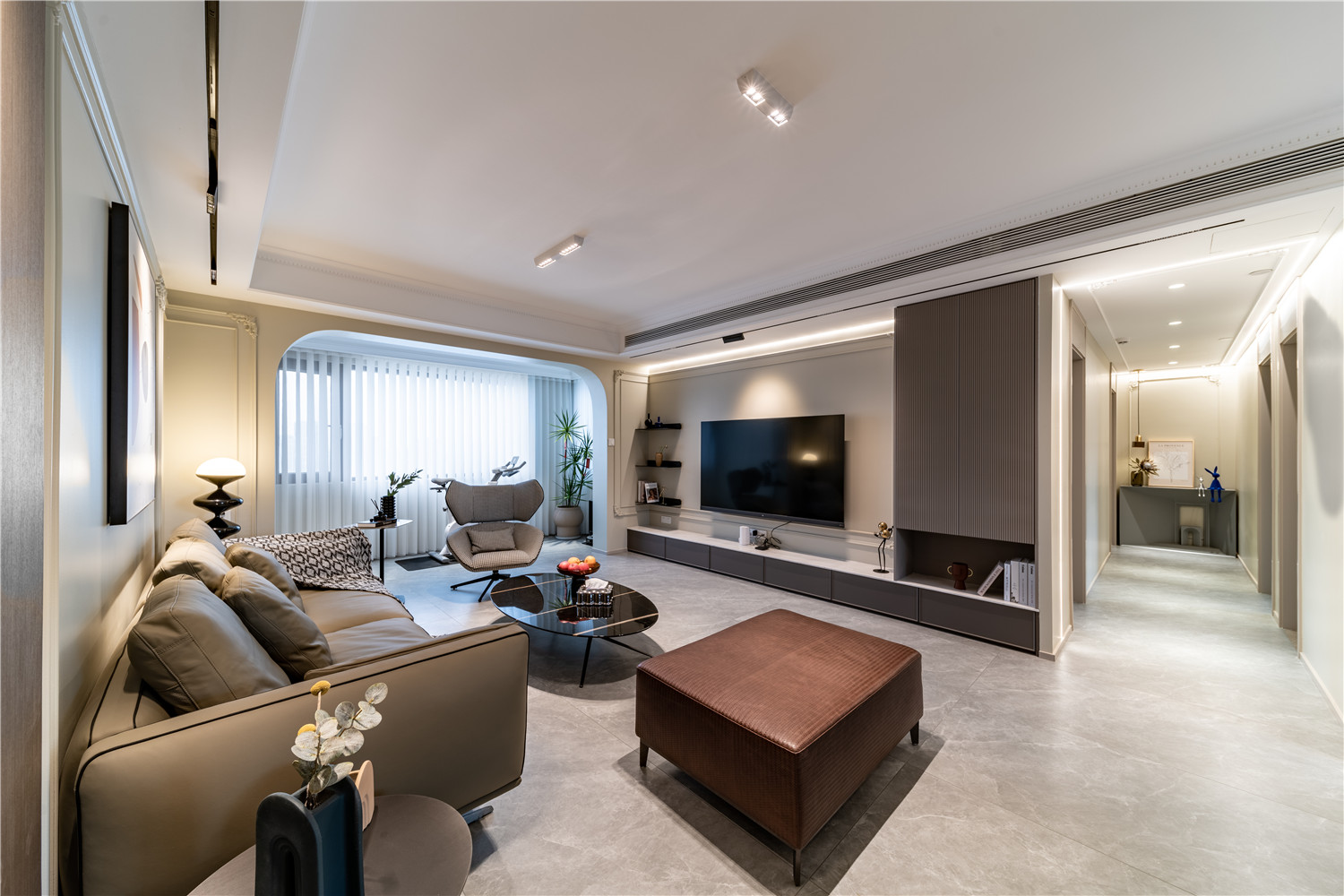 案例簡介:本案的業(yè)主是一對即將結婚的年輕夫妻,同為白領的他們不喜歡過度裝飾,希望設計師能夠使用一些盡可能簡約的元素裝飾空間,以保障耐看且易于打理。設計師按照業(yè)主的喜好與想法,選擇了簡約而又不失品質(zhì)感的現(xiàn)代輕奢風進行裝飾設計,利用簡潔的元素與色彩強調(diào)空間的沉穩(wěn)優(yōu)雅氣息,而細節(jié)處的設計則提升空間的高級品質(zhì)感。