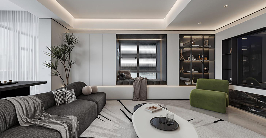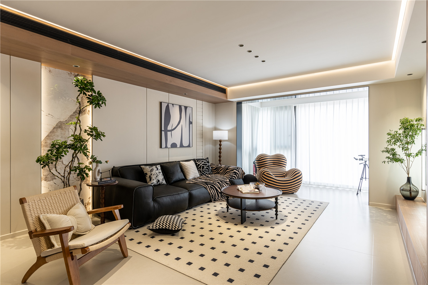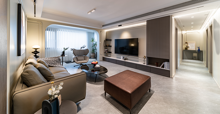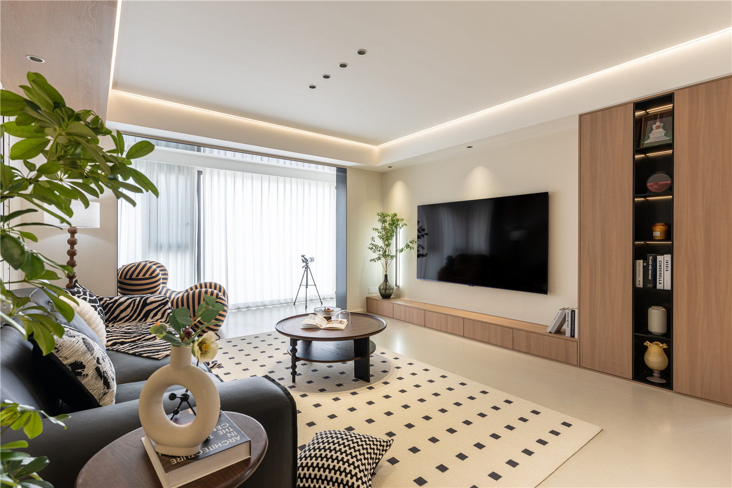 案例簡介:本案的業(yè)主是一對即將結婚的年輕夫妻,同為白領的他們不喜歡過度裝飾,希望設計師能夠使用一些盡可能簡約的元素裝飾空間,以保障耐看且易于打理。設計師按照業(yè)主的喜好與想法,選擇了簡約而又不失品質(zhì)感的現(xiàn)代輕奢風進行裝飾設計,利用簡潔的元素與色彩強調(diào)空間的沉穩(wěn)優(yōu)雅氣息,而細節(jié)處的設計則提升空間的高級品質(zhì)感。