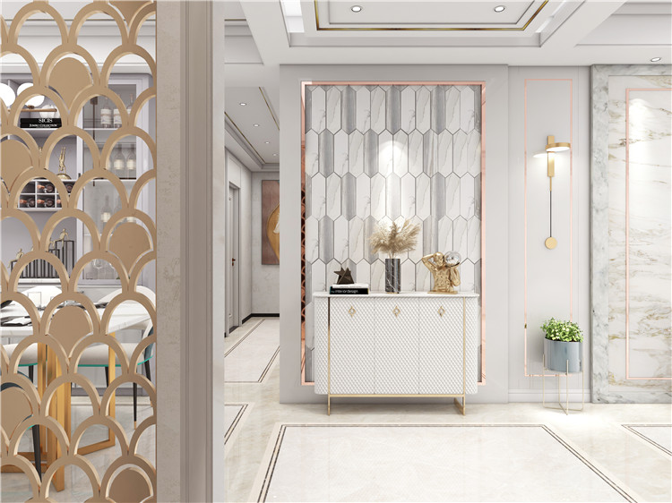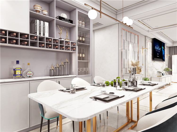 大面積的白色強(qiáng)調(diào)了一種清新悠然的典雅美,金色的線條處理則為空間平添一抹高級品質(zhì)感。