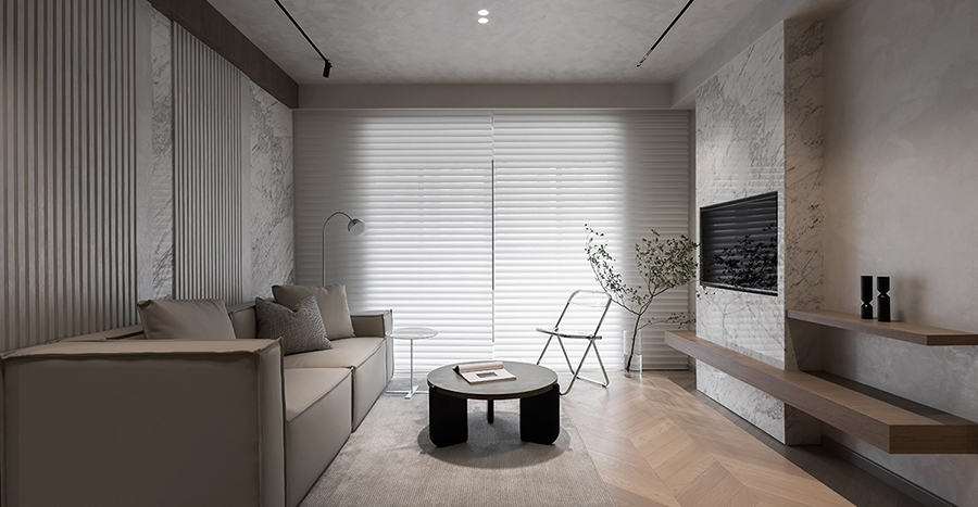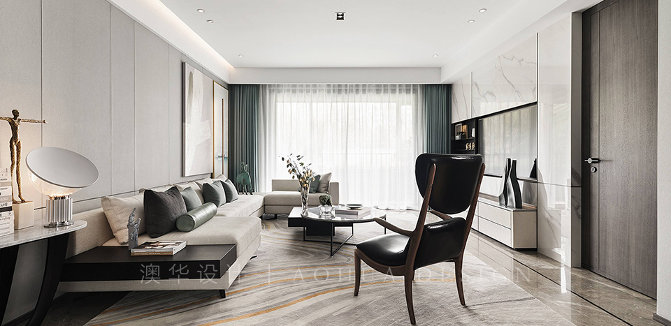 這套融創(chuàng)觀瀾府的四居室房屋建筑面積在143㎡左右,房屋的結(jié)構(gòu)已經(jīng)有了雛形,且業(yè)主為了節(jié)約裝修花銷,提議設(shè)計(jì)師在原有的戶型結(jié)構(gòu)上進(jìn)行裝修設(shè)計(jì)。因此設(shè)計(jì)師保留了原有的功能結(jié)構(gòu),同時(shí)借助色彩、材質(zhì)等軟裝元素為房屋進(jìn)行“包裝”,以保障裝修效果。同時(shí),為提升空間質(zhì)感,設(shè)計(jì)師選用了大量“隱形”設(shè)計(jì),如材質(zhì)本身的紋理等,以起到在無形中裝飾空間的作用。