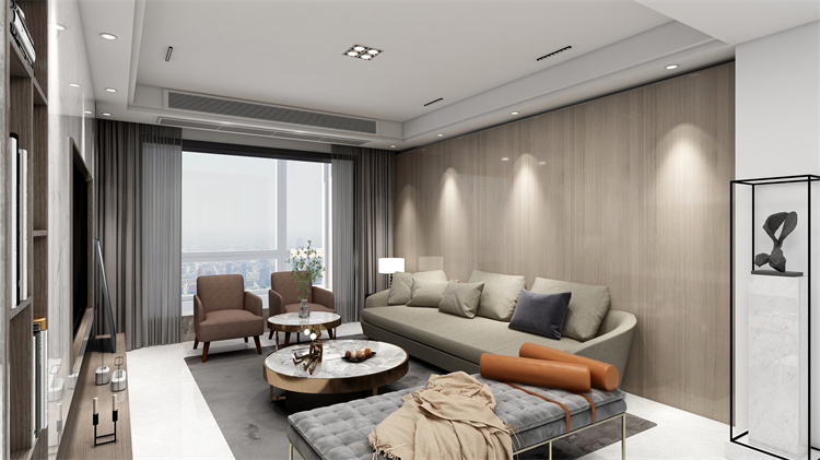 木質(zhì)的沙發(fā)背景墻給人以溫厚舒適的自然問西崗,搭配上淺色沙發(fā),營造清新優(yōu)雅之美。