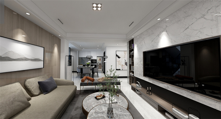帶有灰色暗紋處理的大理石墻壁簡約而又不失高級感,在無形中提升家居品質(zhì)感。
