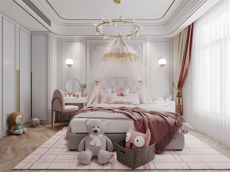 嵌入式櫥柜隱形感強(qiáng)而又不失實用性,橢圓形燈飾清新而又不失輕奢時尚感。