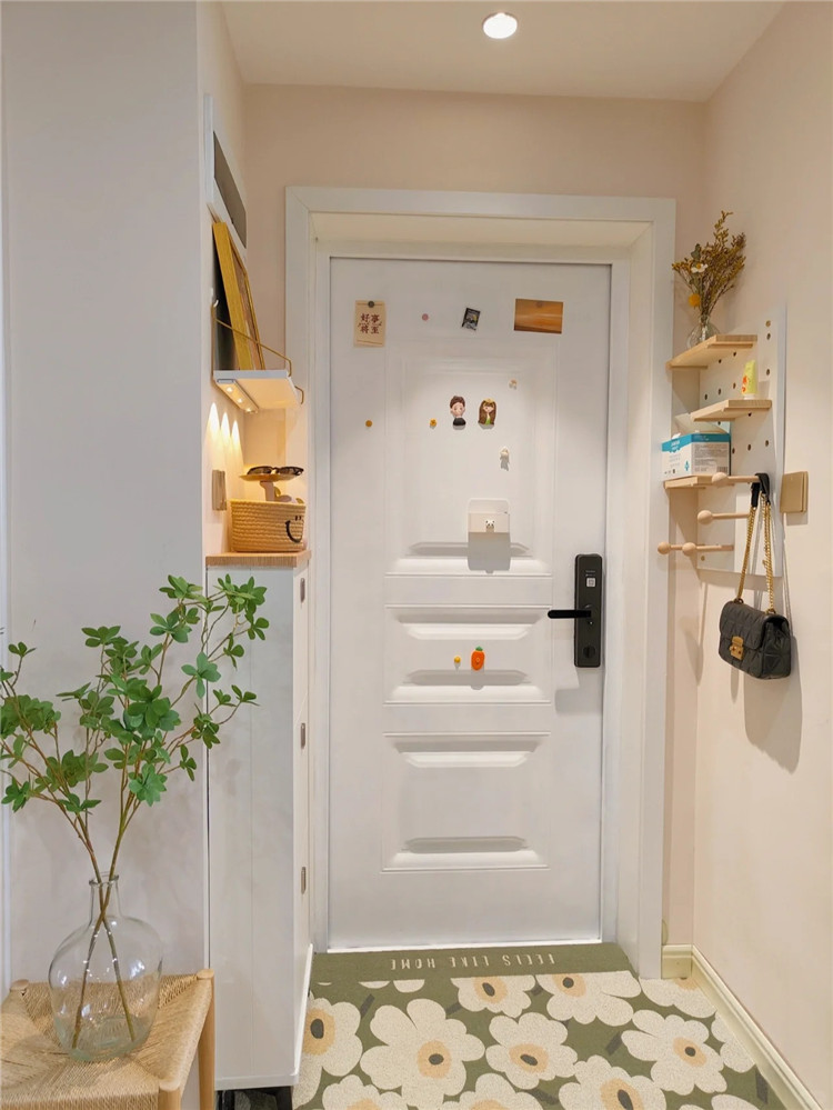 對(duì)于鞋柜上方,可以安裝上洞洞板,洞洞板不占空間,布局更靈活,可用來(lái)裝飾,也可以掛一些小物件。