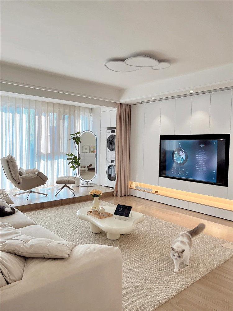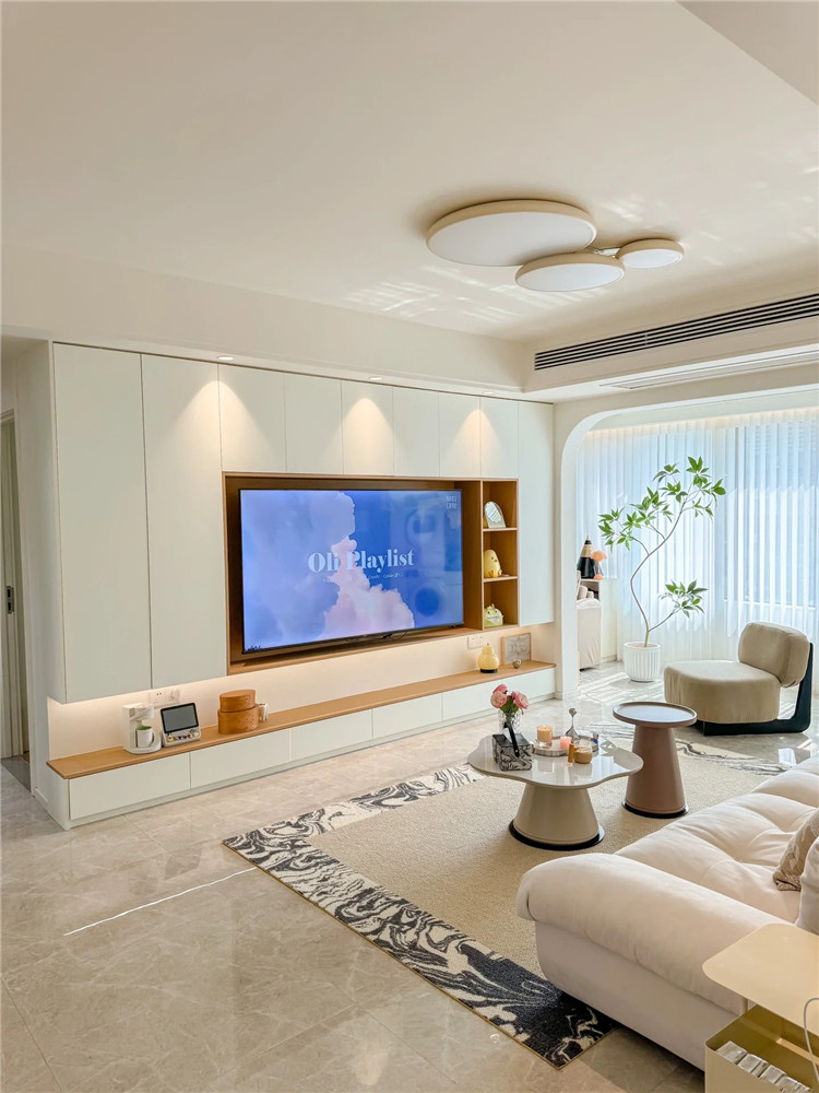 如果你的客廳開(kāi)間在3米以上,我強(qiáng)烈建議考慮安裝滿墻電視柜,它會(huì)為你的家居提供出色的儲(chǔ)物解決方案。