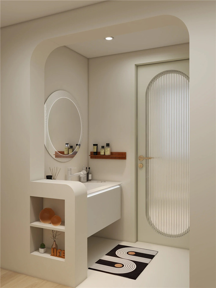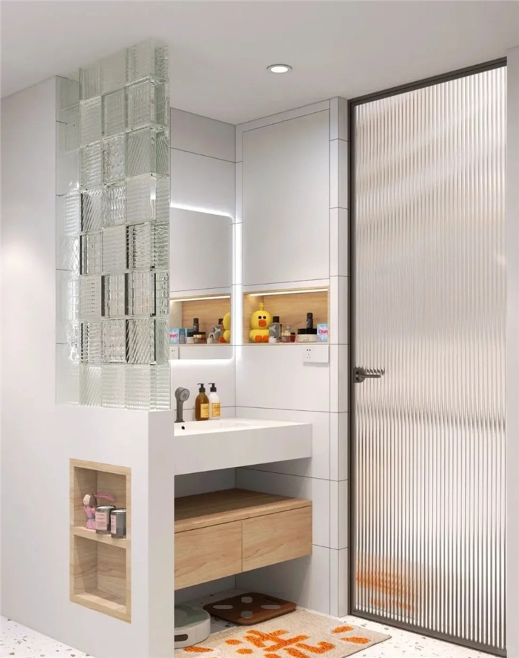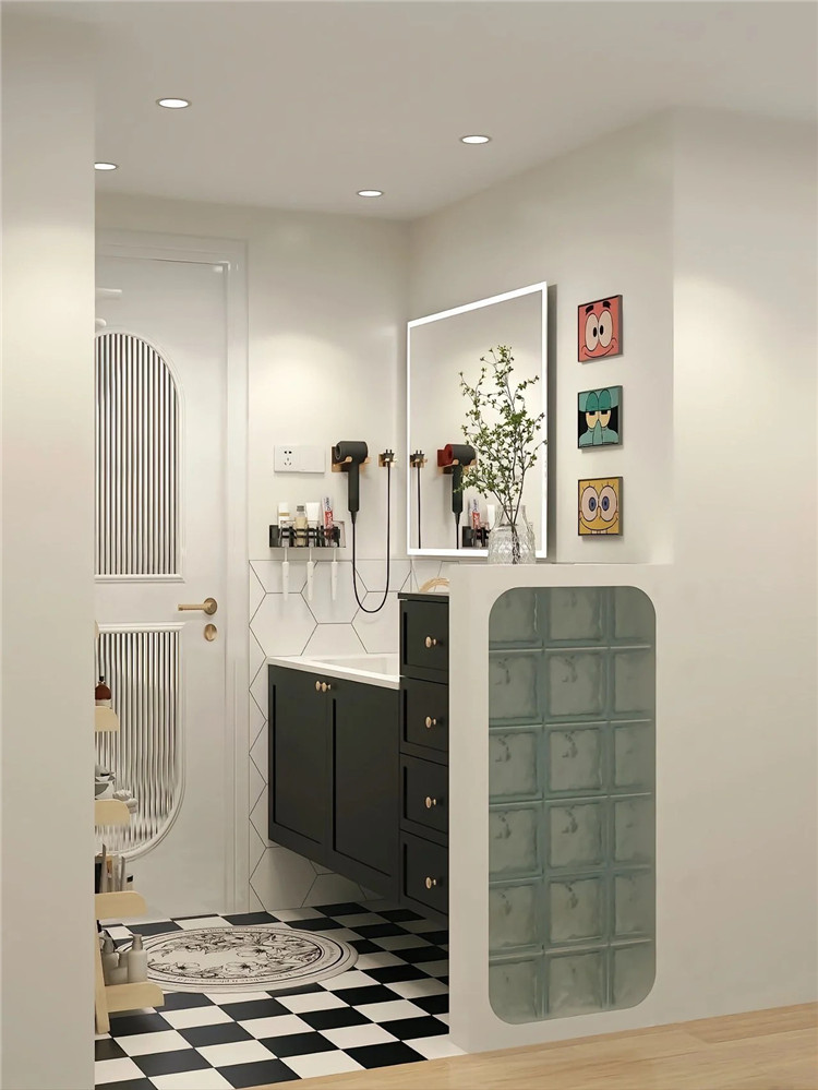 外置洗手臺(tái)可以采用半墻的設(shè)計(jì),然后在半墻上加上美觀的玻璃屏風(fēng)或木質(zhì)隔斷,既保護(hù)了隱私,又不會(huì)擔(dān)心洗手臺(tái)區(qū)域雜亂不美觀。