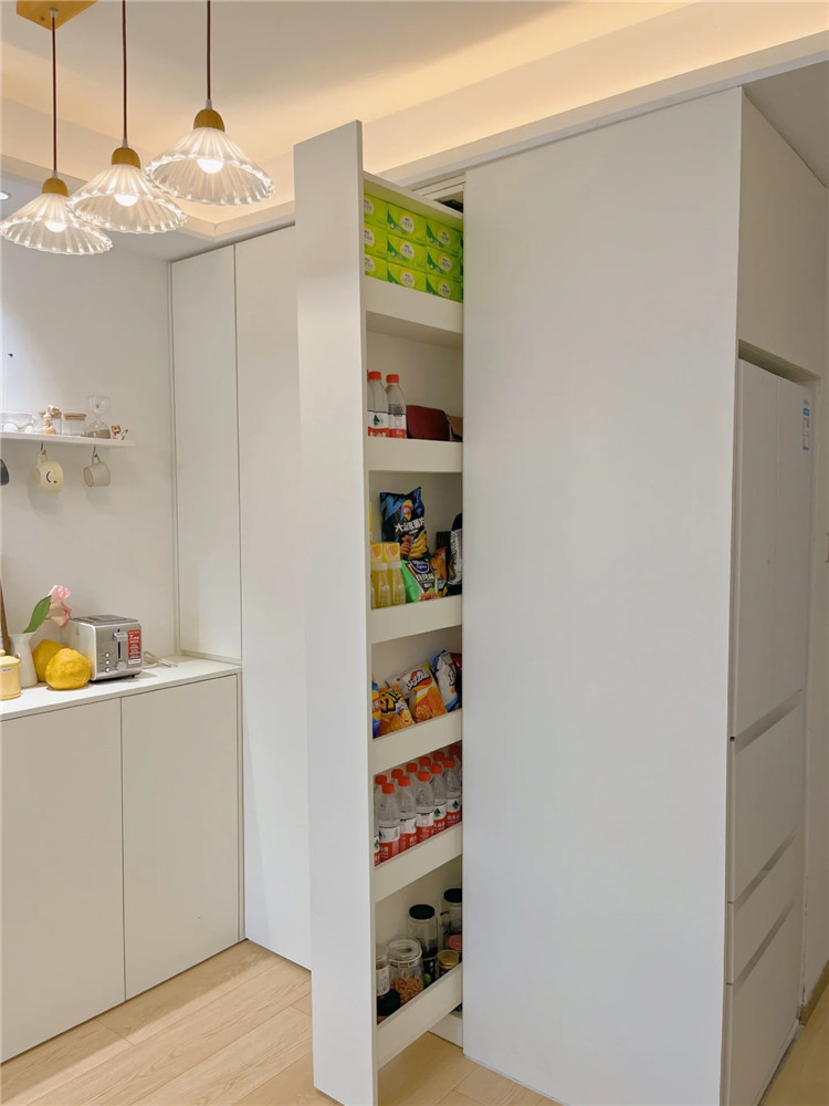 這種雖然放不下常規(guī)的收納柜,但還是可以利用一下,通過(guò)定制超窄收納柜的方式,讓有限的空間發(fā)揮出更多的價(jià)值。
