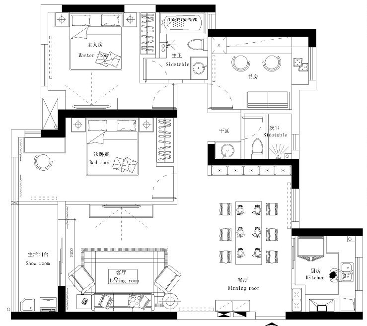 世茂錦繡長江的這套150㎡的四居室主宰整體格局呈現(xiàn)一個大正方形,因此在規(guī)劃設(shè)計上不適合將動靜區(qū)域完全分隔開,而設(shè)計師則利用將就餐區(qū)域作為家居中心點(diǎn),臥室、廚房、客廳則圍繞就餐區(qū)域展開進(jìn)行設(shè)計,有效提升空間利用率的同時有效提升了空間結(jié)構(gòu)的層次感與豐富感。空間整體軟裝則以暖黃色為主基調(diào)色,與簡歐風(fēng)相契合,強(qiáng)調(diào)溫和典雅氛圍。