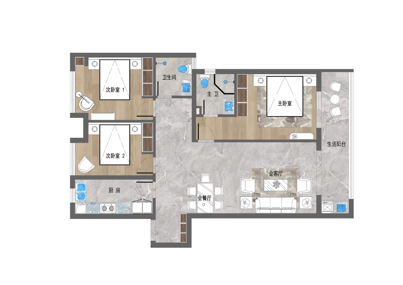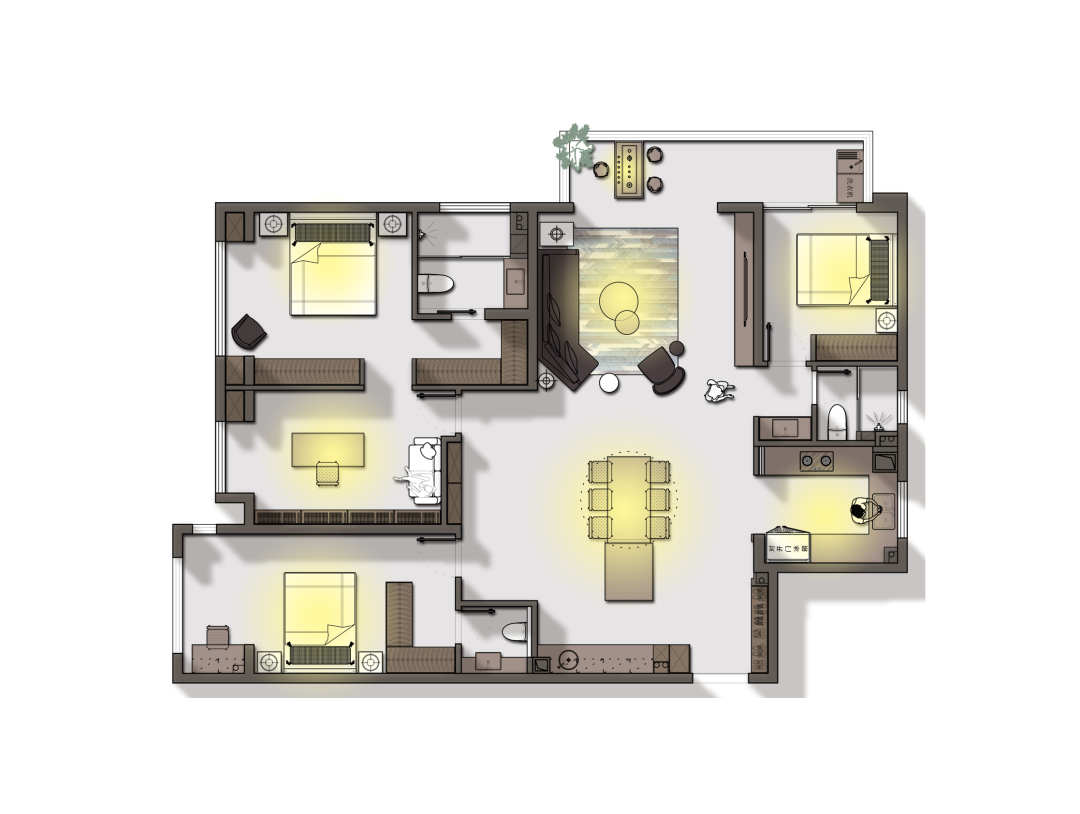 3 主衛(wèi)納入主臥,形成私密、便捷的舒適套臥。