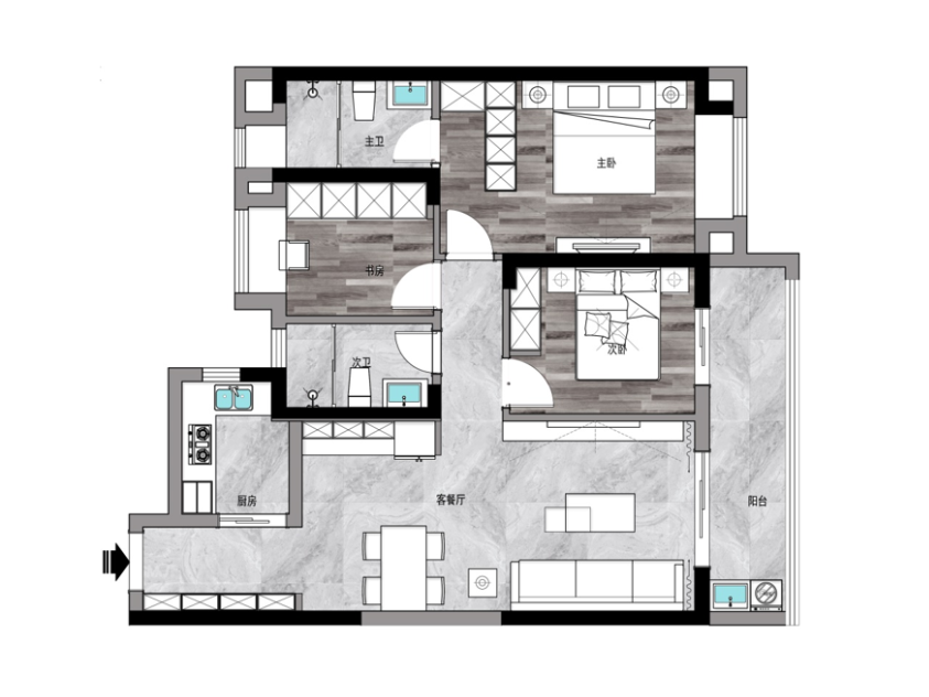 4 主衛(wèi)隔出辦公區(qū)域,功能更加強(qiáng)大。