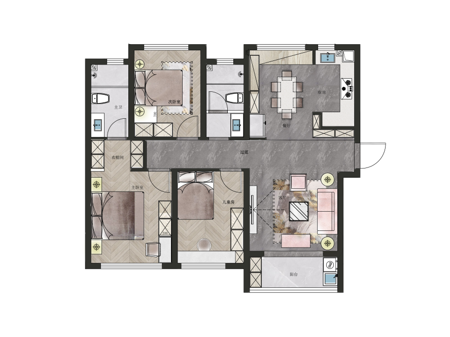 3 主衛(wèi)納入主臥,形成私密、便捷的舒適套臥。
