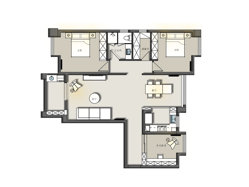 3 保留三房,設(shè)置多功能房,滿足多人口家庭需求。