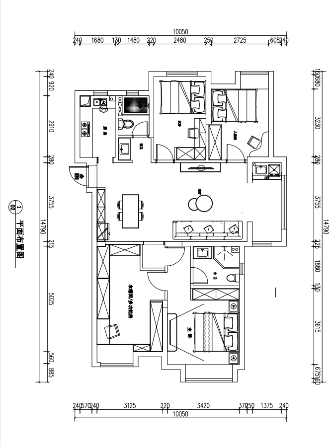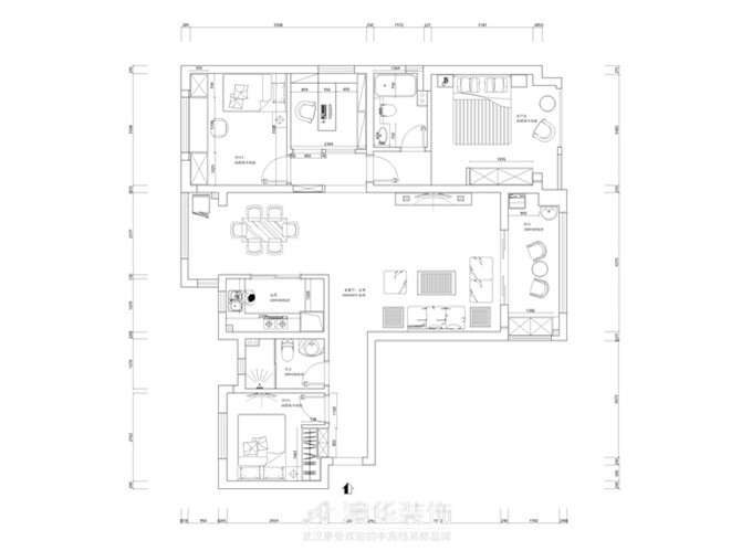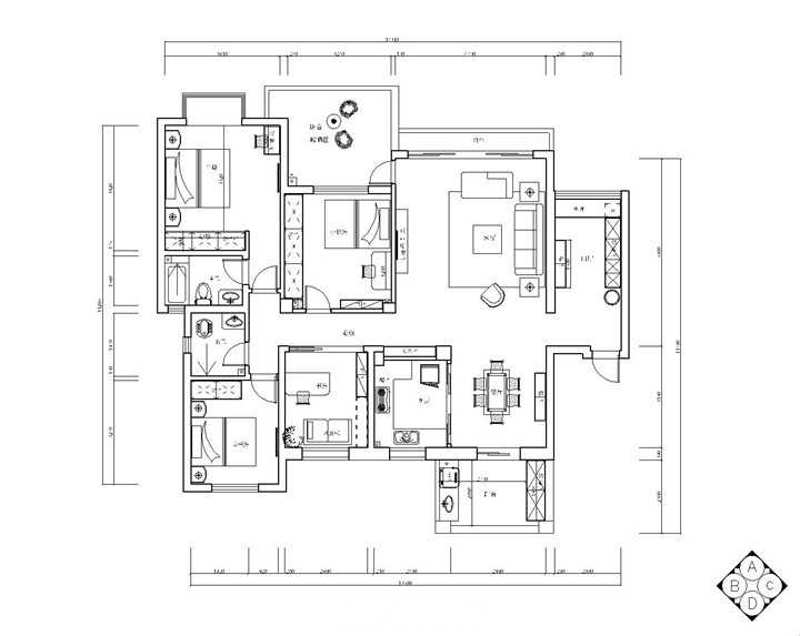 廣電蘭亭瓏府的這套175㎡的四居室房屋其實(shí)戶型相對(duì)比較合理,并沒有出現(xiàn)各種難以利用設(shè)計(jì)的角落,因此空間的設(shè)計(jì)重點(diǎn)將在如何滿足多子家庭的起居使用需求與如何呈現(xiàn)新中式風(fēng)的大氣美。設(shè)計(jì)師通過利用一些帶有中式風(fēng)情的元素進(jìn)行空間裝飾點(diǎn)綴,強(qiáng)調(diào)中式所特有的韻味美,同時(shí)利用多個(gè)嵌入式設(shè)計(jì)來提升空間的利用率,避免房屋看起來過于的壓抑、局促。