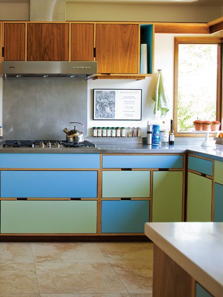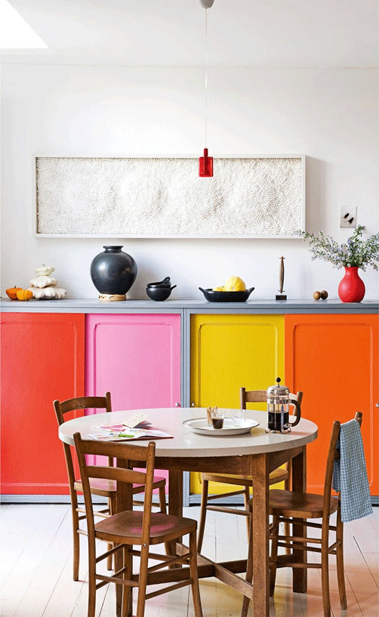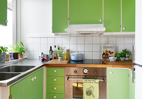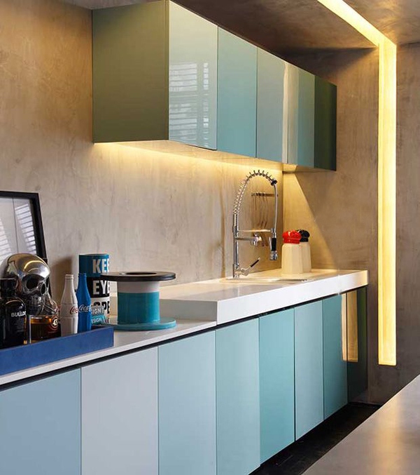 彩色系的櫥柜,讓你的廚房多姿多彩,做飯也是一件很享受的事!